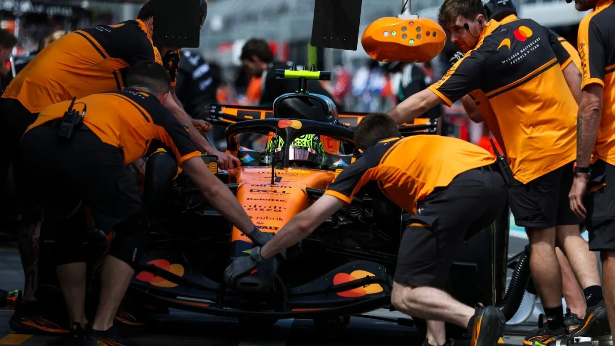 Ubrzo nakon izlaska ventilator je ispao na stazu, što je odmah izazvalo crvenu zastavu kako bi se opasni predmet uklonio.