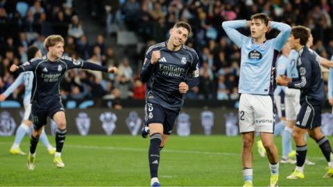 Μετά από δύο σερί ήττες-σοκ από Οσασούνα και Χετάφε, η Ρεάλ Μαδρίτης κατάφερε να φύγει νικήτρια με 2-1 από το "Μπαλαΐδος" απέναντι στην εξαιρετική φέτος Θέλτα, χάρις σε ένα... buzzer beater του Φεντερίκο Βαλβέρδε στο 4ο λεπτό των καθυστερήσεων και μείωσε στον ένα βαθμό την απόστασή της απ' την πρωτοπόρο Μπαρτσελόνα, με έναν αγώνα περισσότερο. Στο πρώτο χρονικά παιχνίδι της 27ης αγωνιστικής της LaLiga η «Βασίλισσα» δεν είχε καλή εικόνα, αλλά προηγήθηκε νωρίς -στο 11ο λεπτό- με τον Τσουαμενί. Η Θέλτα ισοφάρισε στο 25' με τον Ιγκλέσιας, όμως ενώ όλα έδειχναν πως οι Μαδριλένοι όδευαν προς ακόμη μία «γκέλα» ήρθε το τρομερό γκολ του Βαλβέρδε στις καθυστερήσεις για να της χαρίσει ένα πολύτιμο «τρίποντο». Αναλυτικά τα αποτελέσματα και οι σκόρερ της 27ης αγωνιστικής και η βαθμολογία της La Liga έχουν ως εξής: Θέλτα-Ρεάλ Μαδρίτης 1-2 (25' Ιγκλέσιας - 11' Τσουαμενί, 90'+4' Βαλβέρδε) Οσασούνα-Μαγιόρκα 07/03 Λεβάντε-Τζιρόνα 07/03 Ατλέτικο Μαδρίτης-Σοσιεδάδ 07/03 Αθλέτικ Μπιλμπάο-Μπαρτσελόνα 07/03 Βιγιαρεάλ-Έλτσε 08/03 Χετάφε-Μπέτις 08/03 Σεβίλλη-Ράγιο Βαγεκάνο 08/03 Βαλένθια-Αλαβές 08/03 Εσπανιόλ-Οβιέδο 09/03 ΒΑΘΜΟΛΟΓΙΑ (σε 26 αγώνες) Μπαρτσελόνα 64 Ρεάλ Μαδρίτης 63 -27αγ. Ατλέτικο Μαδρίτης 51 Βιγιαρεάλ 51 Μπέτις 43 Θέλτα 40 -27αγ. Εσπανιόλ 36 Ρεάλ Σοσιεδάδ 35 Αθλέτικ Μπιλμπάο 35 Οσασούνα 33 Χετάφε 32 Ράγιο Βαγεκάνο 30 Σεβίλλη 30 Τζιρόνα 30 Βαλένθια 29 Αλαβές 27 Έλτσε 26 Μαγιόρκα 24 Λεβάντε 21 Οβιέδο 17 Πηγή: Πρώτο Θέμα