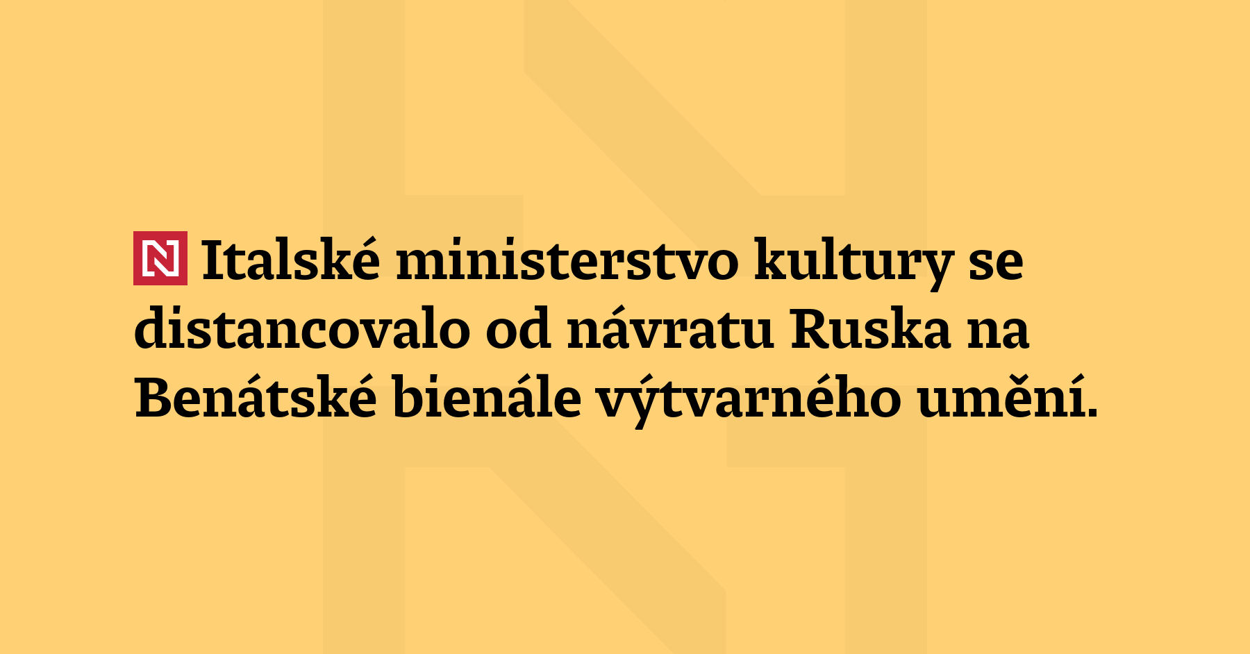 Italské ministerstvo kultury se distancovalo od návratu Ruska na Benátské bienále výtvarného umění. Krok kritizuje i skupina europoslanců, informovala italská tisková agentura ANSA. Bienále začne v italském přístavním městě v květnu a potrvá až do listopadu. Ruská národní expozice chyběla kvůli válce na Ukrajině na předchozích dvou ročnících, tedy v letech 2022 a 2024. (ČTK)
