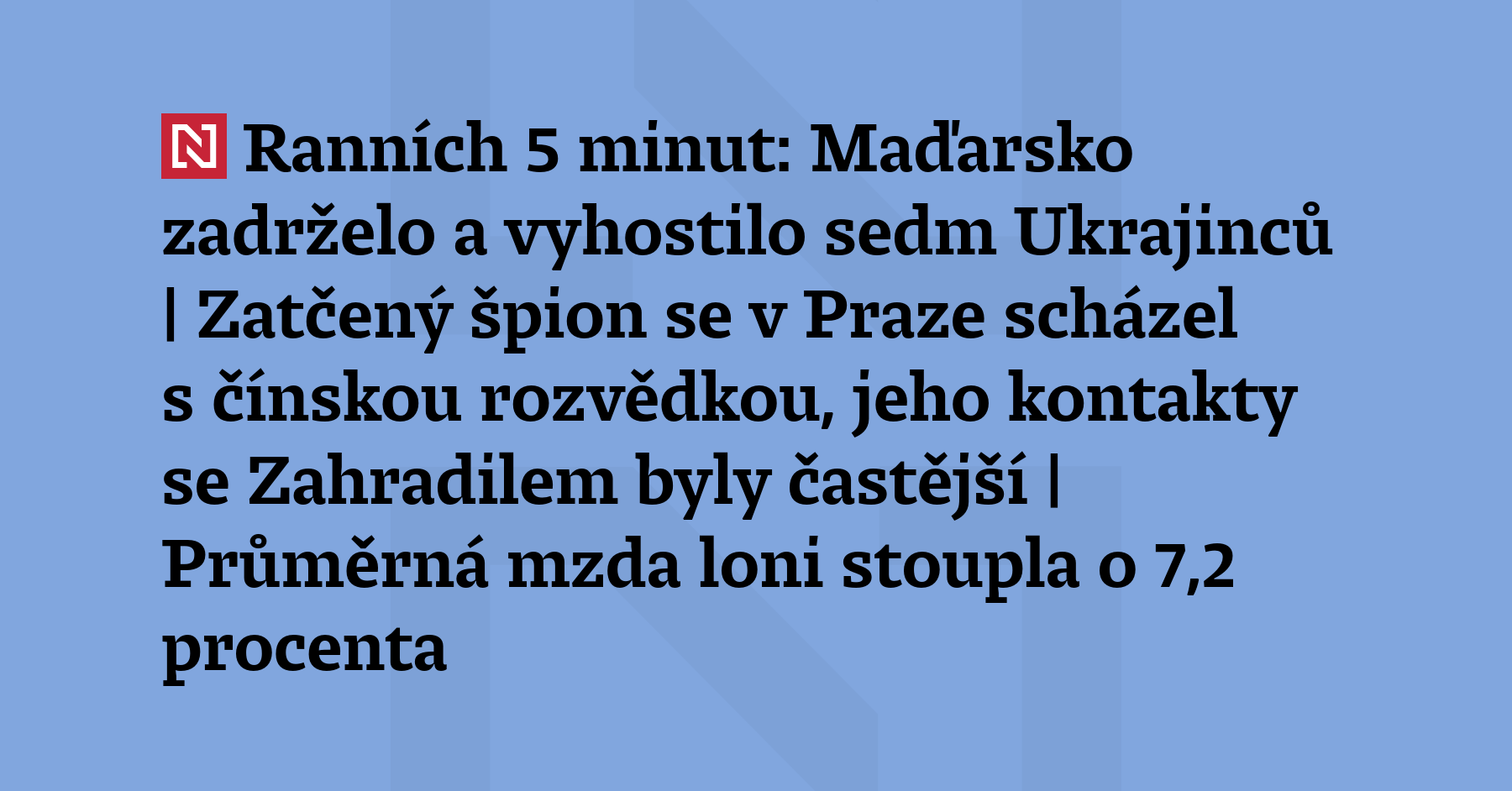 Ranních 5 minut: Maďarsko zadrželo a vyhostilo sedm Ukrajinců | Zatčený špion se v Praze scházel s čínskou rozvědkou, jeho kontakty se Zahradilem byly častější | Průměrná mzda loni stoupla o 7,2 procenta