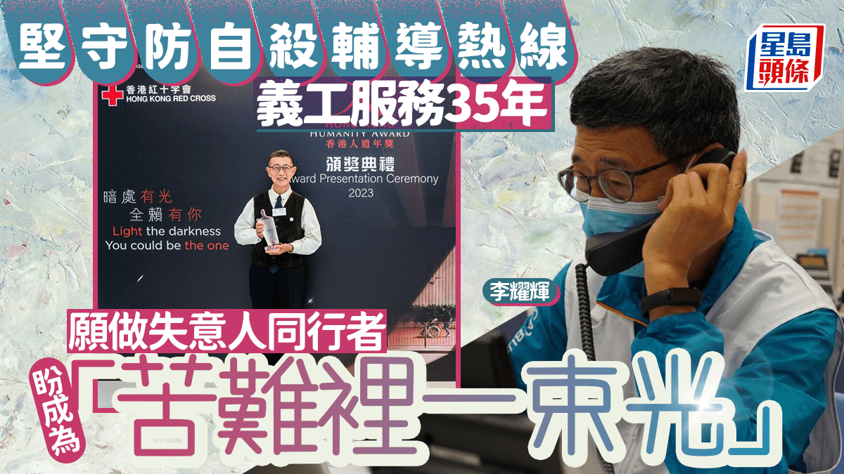 本港退休大學教授李耀輝是2023年「香港人道年獎」得主,一度堅守防自殺輔導熱線達40年,其間加入撒瑪利亞防止自殺會電話熱線義工、無國界醫生、紅十字會的電話熱線,還有生命教練的培訓,去年亦出版電子書寫下人生歷程。 堅守防自殺輔導熱線40年 最終換來失意人無數句謝謝 李耀輝憶述,記得剛開始接聽電話時,一個深夜的來電者語氣中滿是絕望與放棄。他用盡所學的聆聽技巧,竭力保持冷靜與同理,試圖在漆黑的氛圍中建立