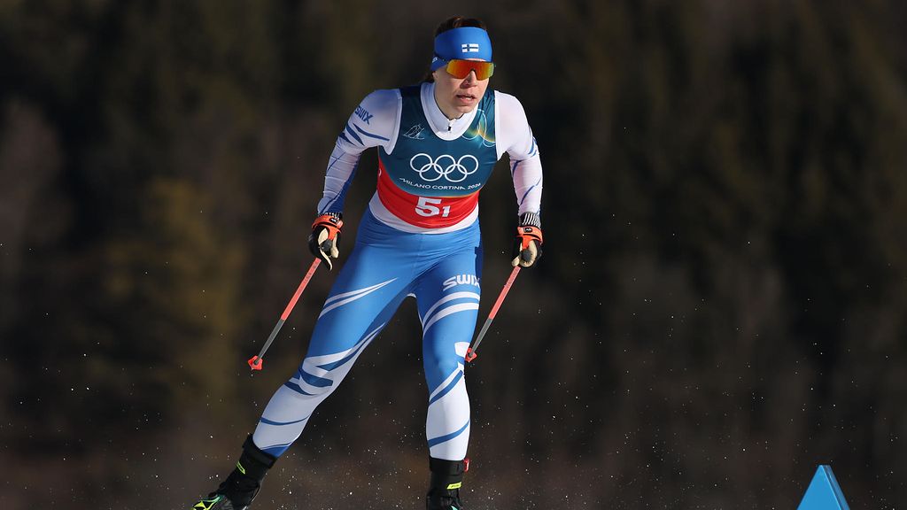 Jasmi Joensuu pettyi kaatumiseensa. Sadatteli kivuliasta jalkaansa.