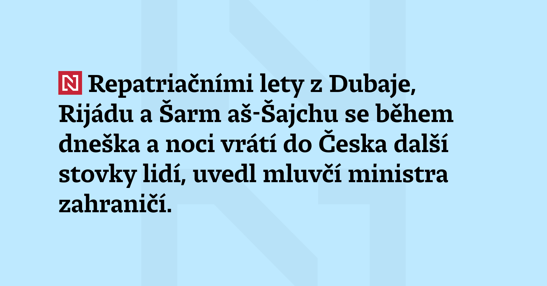 Repatriačními lety z Dubaje, Rijádu a Šarm aš-Šajchu se během dneška a noci vrátí do Česka další stovky lidí, uvedl mluvčí ministra zahraničí. (ČTK)