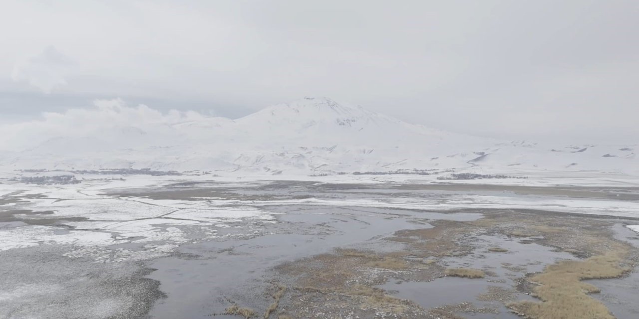 Sarısu sazlıkları ile Süphan Dağı’nın karlı zirvesi göz kamaştırıyor