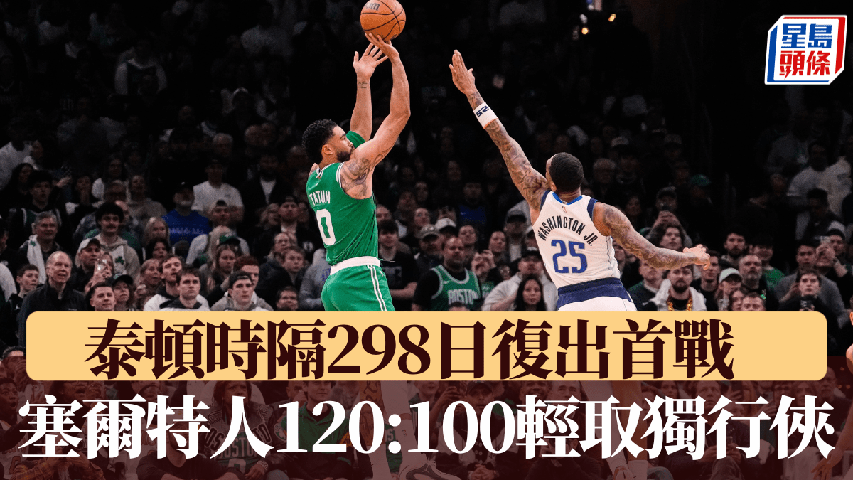 經歷了長達298天的養傷期後,塞爾特人球星泰頓(Jayson Tatum)終於在周五主場對陣獨行俠的比賽中傷癒復出。雖然久疏戰陣,狀態尚未恢復至最佳,但他仍貢獻了「雙雙」成績,協助綠軍以120:100大勝獨行俠。 泰頓自去年五月在東岸準決賽第四場對陣紐約人的比賽中,遭遇右腳跟腱撕裂的重傷後,一直休戰至今。今場是他自那時以來的首場正式比賽。塞爾特人教練團對其使用相當謹慎,全場只讓他上陣27分鐘,並將