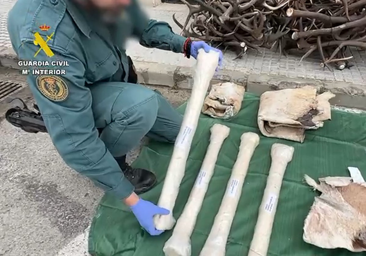 Cuatro huesos de jirafa, varias pieles sin curtir de animales autóctonos de África -facochero, springbok y orix-, una pieza esculpida en madera con forma de jirafa y 150 kilos de cornamenta de ciervo, gamo y corzo... La Guardia Civil ha incautado numerosas piezas de especies protegidas procedentes de África . El material se ha incautado mientras viajaba en una furgoneta en la provincia de Cádiz . El conductor no pudo documentar la legal tenencia y procedencia, ni el origen de las piezas ni la trazabilidad. Por este motivo, se investigan los hechos como un posible delito relativo al comercio ilegal de especies de fauna protegida incluidas en la Convención sobre el Comercio Internacional de Especies Amenazadas de Fauna y Flora... Ver Más
