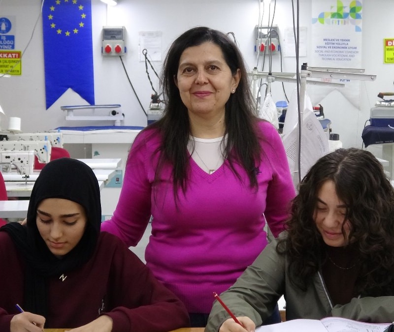 Şahinbey ilçesinde 30 yıl önce öğrenciyken oturduğu lise sıralarına, şimdi moda tasarım teknolojileri öğretmeni olarak olarak ders anlatıyor.