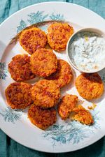 Für eine vegane Variante des Gerichts kann das Ei durch zwei Esslöffel Speisestärke ersetzt werden. Die Puffer schmecken am besten mit einem Zitronenjoghurt-Dip
