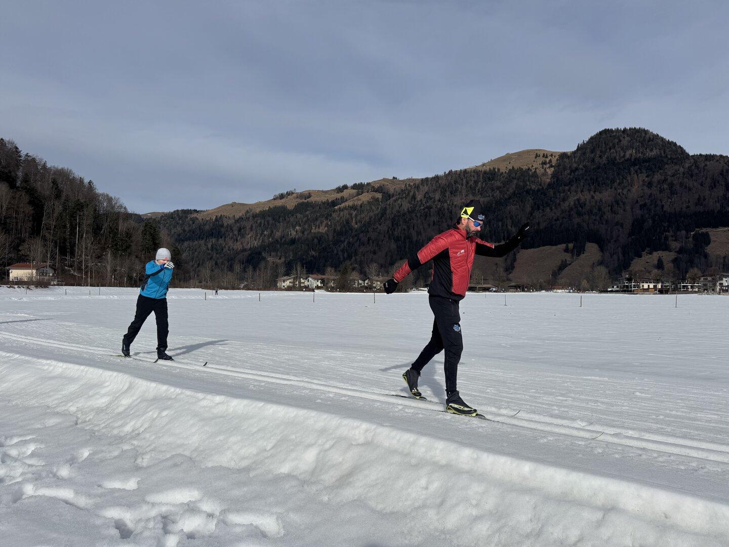Jeden Tag Ski fahren kann ziemlich anstrengend sein – denken sich Eltern oft im Stillen, schließlich will man die Pisten-Liebe des Nachwuchses nicht brechen. Es braucht also artverwandtes Programm, das ebenfalls Spaß macht. So steigt beharrlich das Interesse an Langlaufen nicht nur im Allgemeinen, sondern im Speziellen auch mit Kindern, sagt Markus Weingartner . Der ehemalige Biathlet betreibt mit seiner Frau Renata das Nordic Center in Kössen – dem Zentrum der Region Kaiserwinkl . „Viele wollen einfach etwas Neues probieren, andere etwas für die Fitness tun. Und es ist natürlich auch viel günstiger“, erklärt er und spricht damit an, was viele beschäftigt: Während ein Skiticket selbst in günstigen Gebieten kaum unter 50 Euro zu haben ist, sind die, teilweise sogar beschneiten, Kaiserwinkl-Loipen gratis zu nutzen. Wenn der – kniegeplagte – Autor dieser Zeilen also seinen Jung-Teenager dazu verleiten will, einmal von den geliebten Alpin-Ski auf dünne Langlauf-Latten umzusteigen, gibt es nicht viel zu verlieren. Das Nordic Center hat umfangreiche Leih-Ausrüstung – was beim Langlaufen wichtig ist, denn der Ski muss perfekt zu Größe, Gewicht, Können und der Technik passen! Aber schon nach Minuten zeigt sich: Es gibt einiges zu gewinnen. „Das machen wir wieder, das macht Spaß.“ Sätze, bei denen Eltern mit dem Schnee um die Wette glitzern.