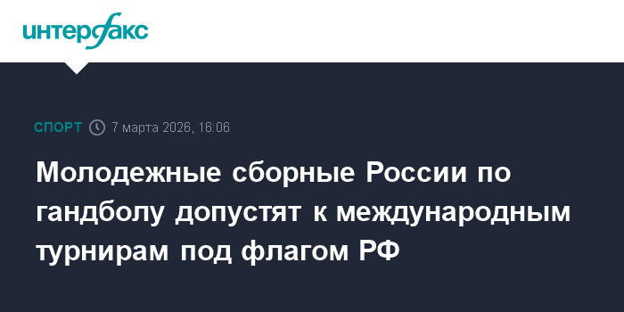 Молодежные и юношеские сборные России по гандболу будут допущены к международным соревнованиям с национальными флагом и гимном, сообщил телеканалу "МАТЧ ТВ" председатель высшего совета Федерации гандбола России Сергей Шишкарев."Решение еще не оформлено, но оно есть.