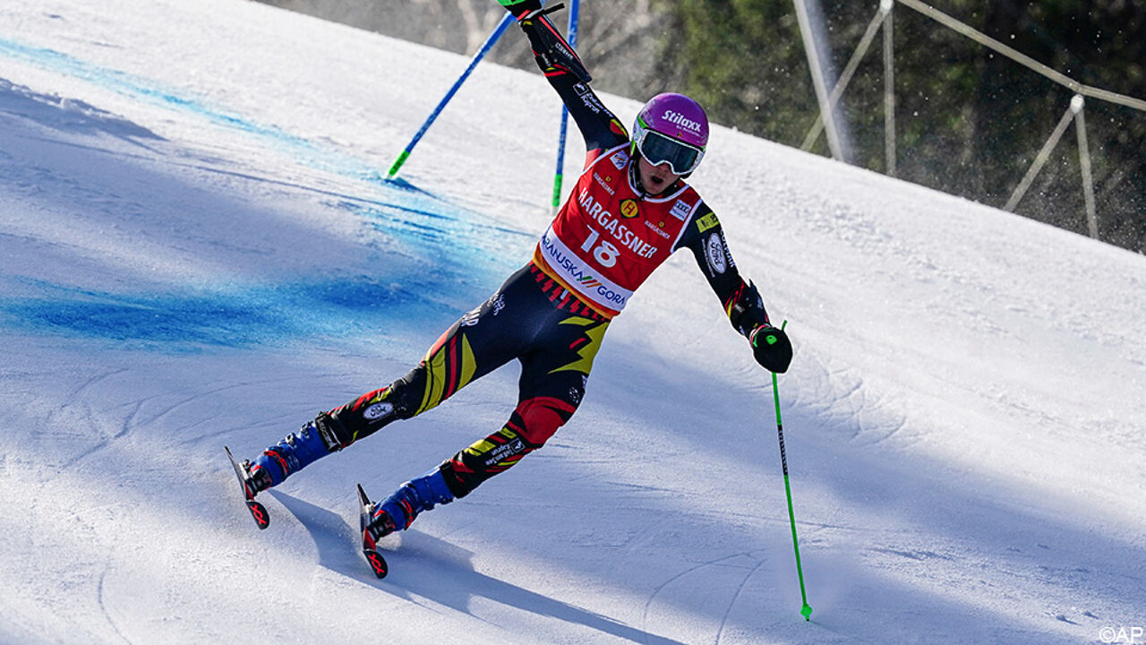 Sam Maes eindigt 17e in reuzenslalom in Kranjska Gora, olympisch kampioen wint #sporza