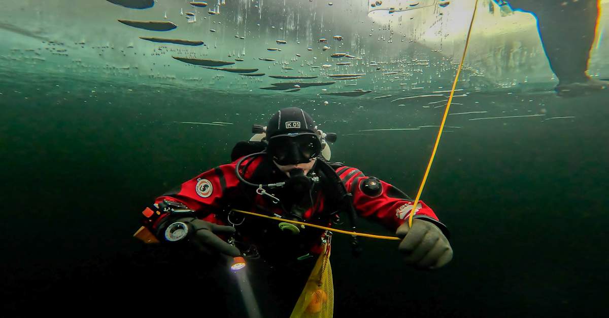 Sukelluspuvun takamus jäätyi avantoon kiinni, kun tutkijat harjoittelivat arktista sukellusta Kilpisjärvessä. Moni tutkimusmatka vaatii sukellustaitoa.