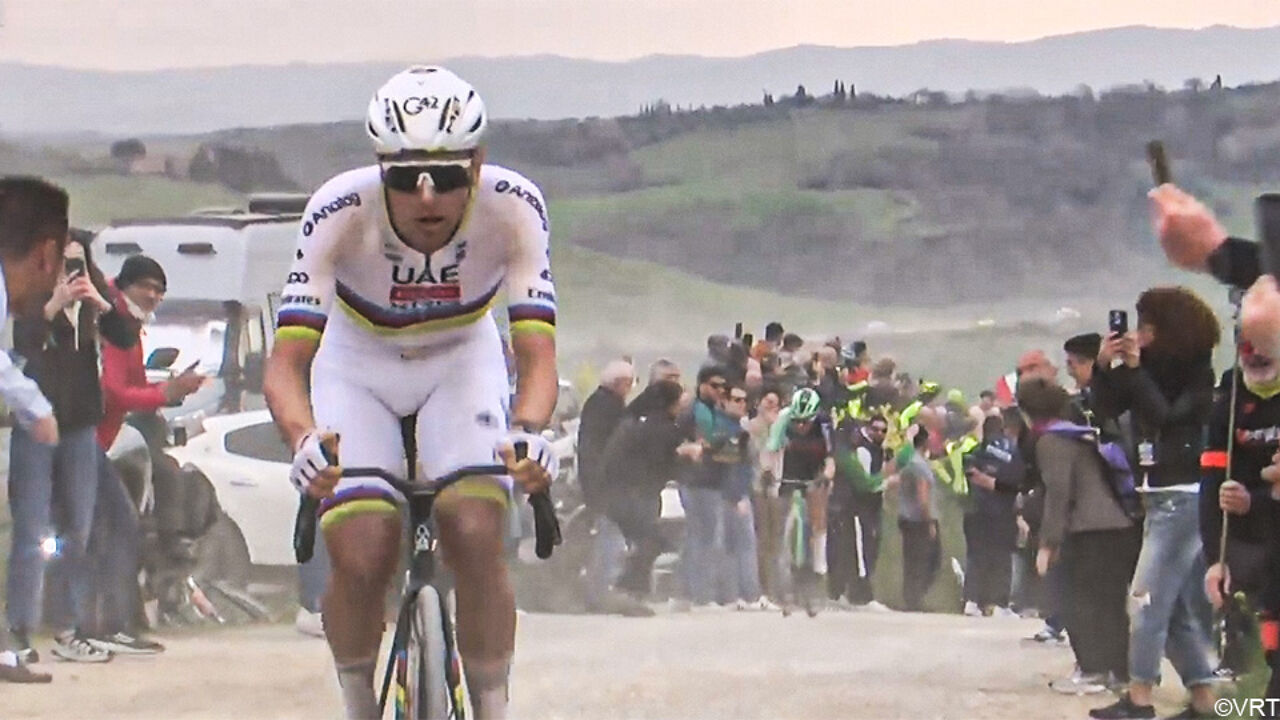 Hij doet het opnieuw op de Monte Sante Marie: Paul Seixas spartelt tegen, maar Tadej Pogacar vat solo van 78 kilometer aan