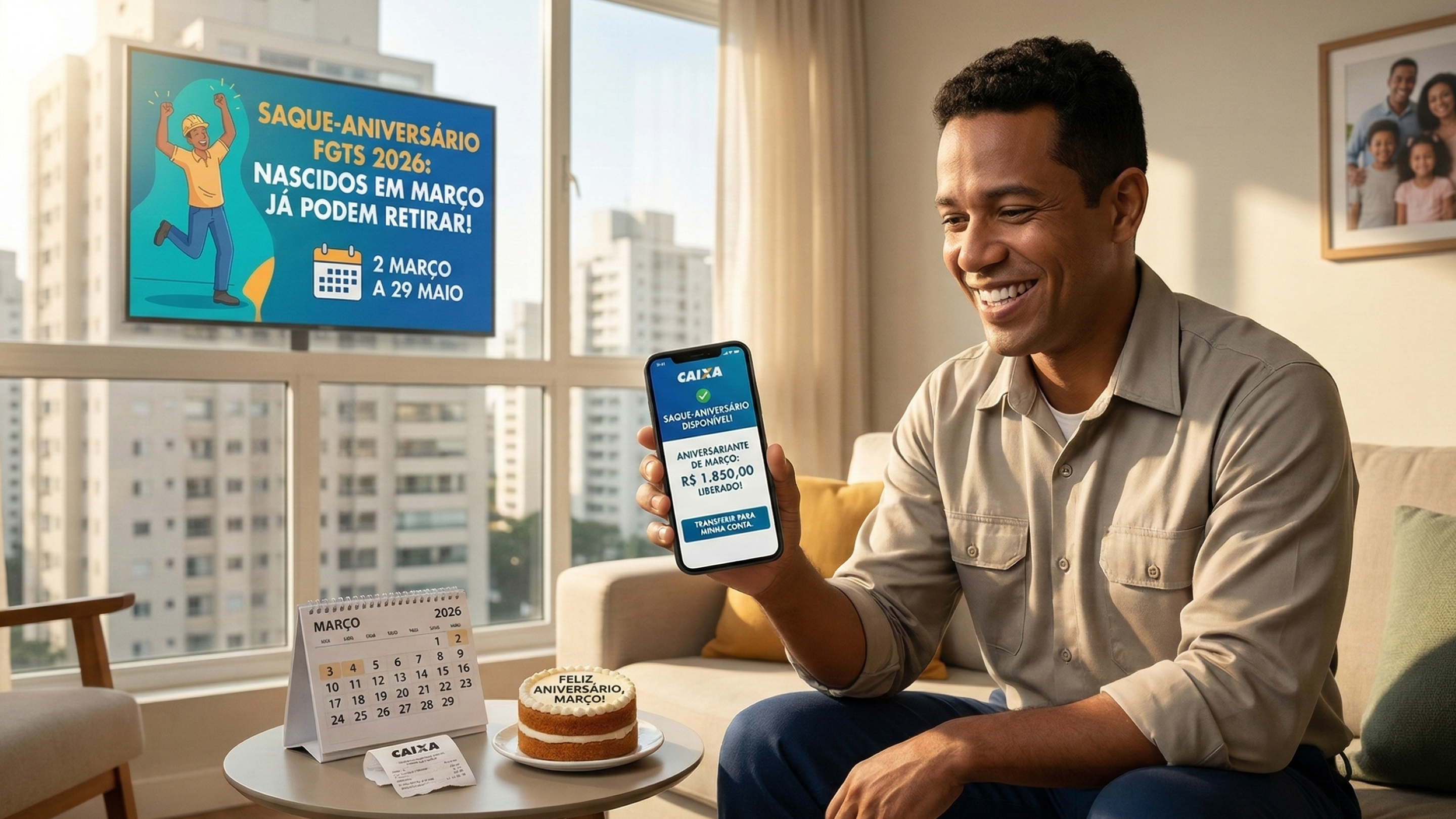 Trabalhadores nascidos em março que aderiram ao Saque-Aniversário do FGTS já podem retirar a parcela liberada em 2026. O período de saque começou em 2 de março e segue disponível até 29 de maio. Quem não realizar a retirada dentro desse prazo perde a janela de saque e o valor retorna automaticamente para a conta... The post Nascidos em março já podem sacar o FGTS em 2026 pelo Saque-Aniversário appeared first on O Antagonista .