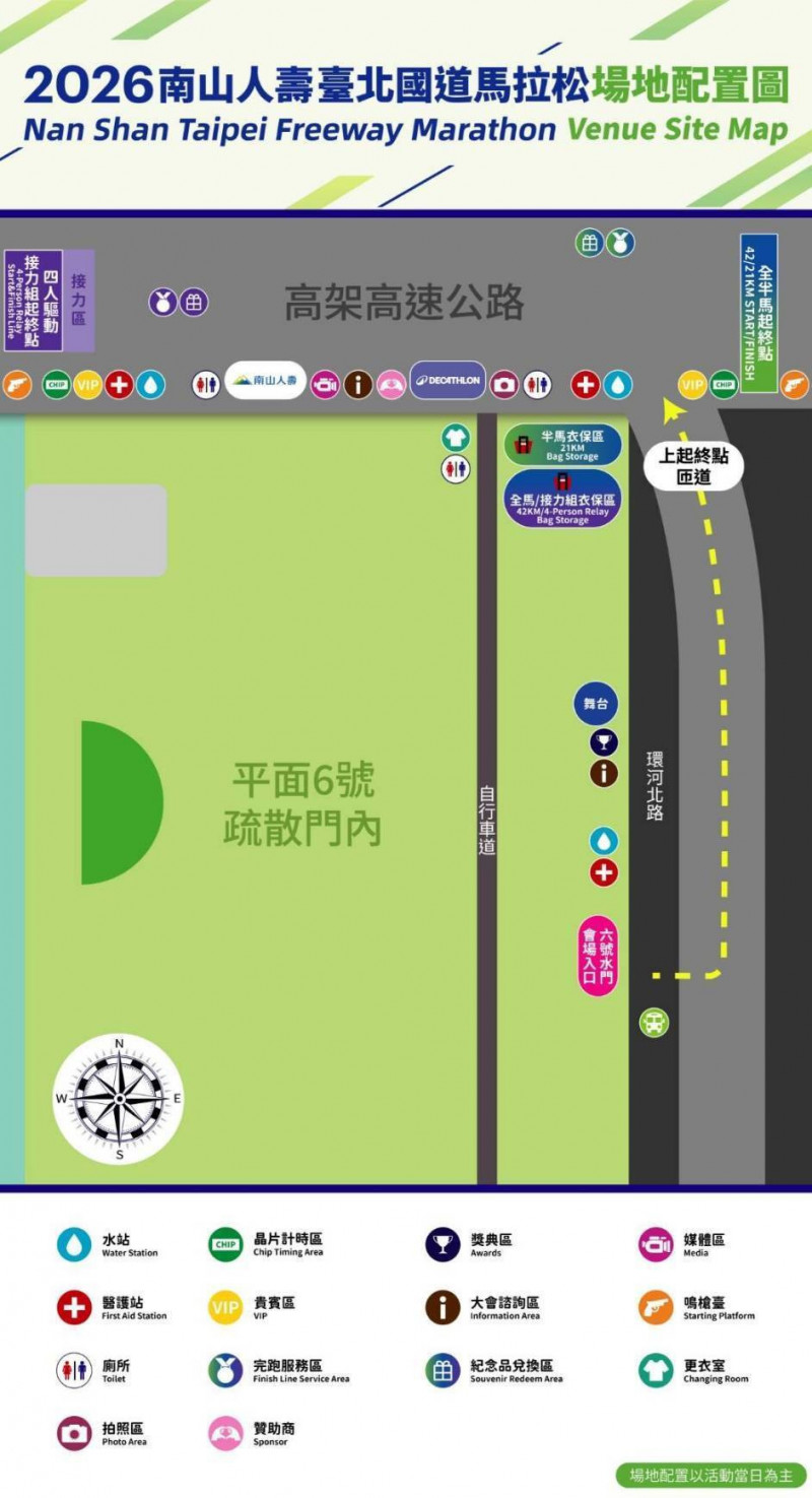 中華民國路跑協會將於8日(星期日) 5時至12時,假國道1號五股至汐止北上高架段舉行「2026南山人壽臺北國道馬拉松」,參加人數約9000人,集結活動會場位於「淡水河6號...…