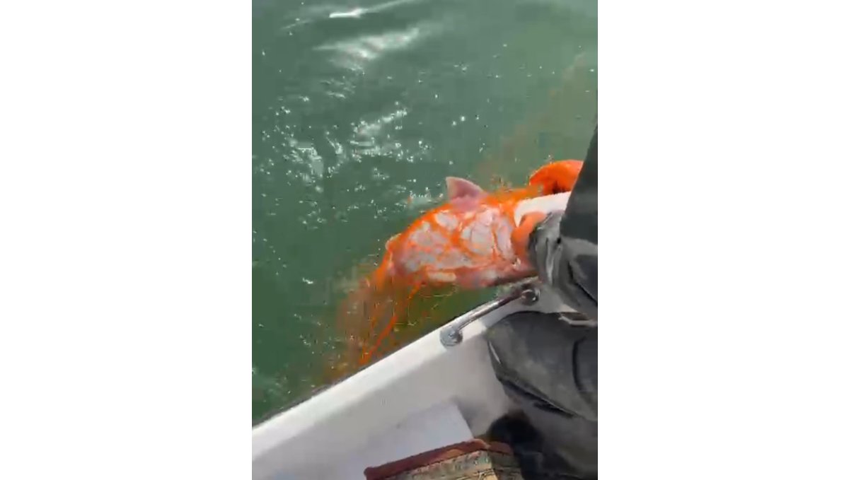 Elazığ'da Keban Baraj Gölü'nde 1 metre uzunluğunda 30 kilo ağırlığında dev Fırat turnası yakalandı.