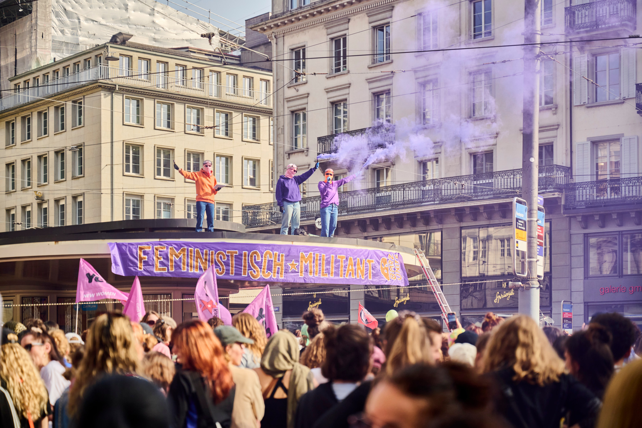 Die unbewilligte Demonstration anlässlich des «feministischen Kampftags» verlief friedlich. Der Umzug erstreckte sich vom Paradeplatz bis zur Sihlporte.