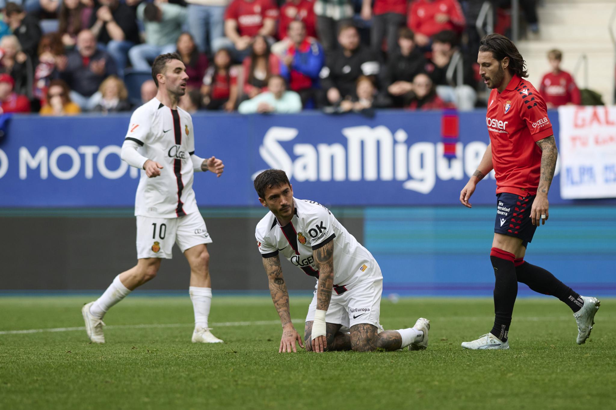 Martín Demichelis vivió un estreno en una montaña rusa. Pasó del debut soñado a un punto de frustración después de una función en El Sadar que mandaba en el marcador y en el campo por 0-2 hasta el minuto 89 y al que se le atragantó los nueve minutos de descuento. Osasuna aprovechó el miedo a ganar de los isleños para asestarle dos directos que le tumbaron a la lona y que aliñan de amargura un estreno que dejó algunos brotes verdes.