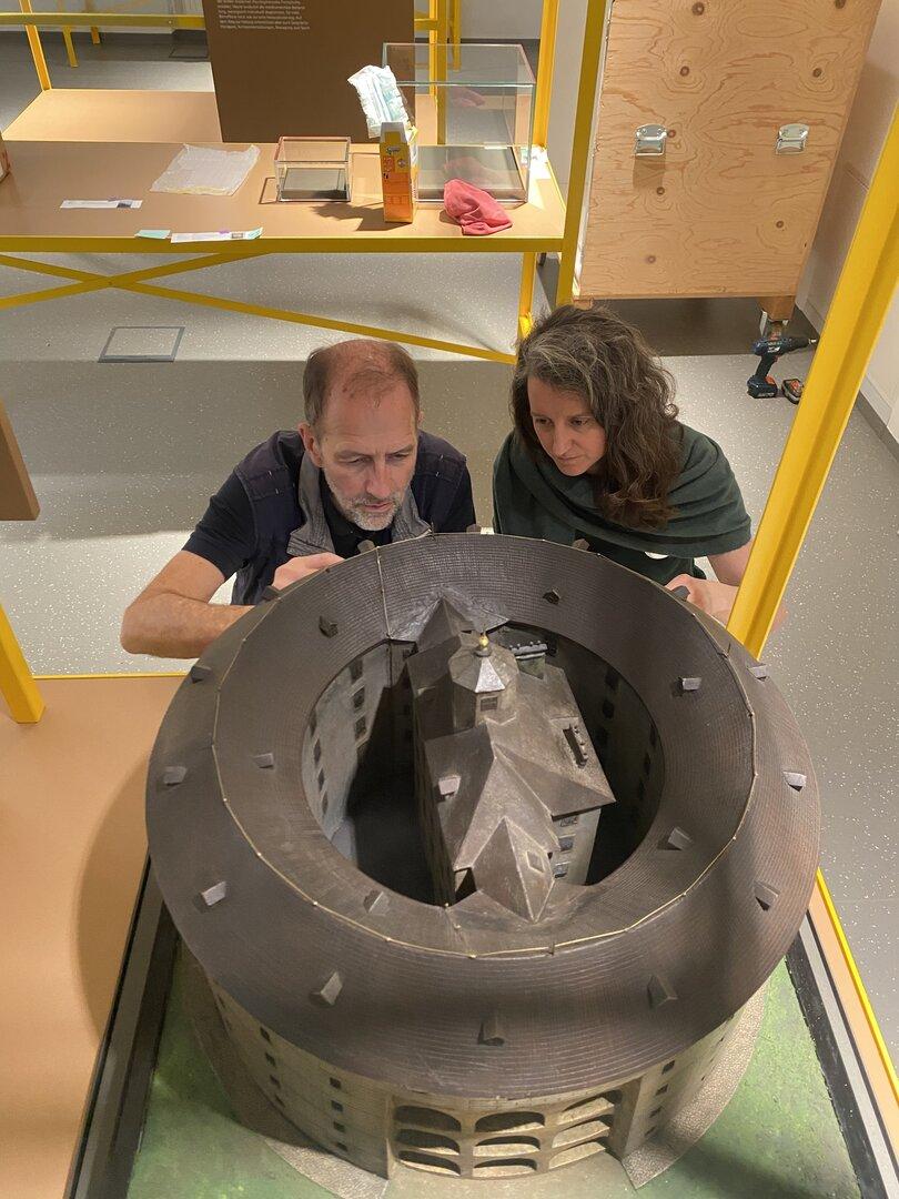 Die NÖ Landesausstellung findet heuer im Haus 21 des Landesklinikums Mauer im Mostviertel ihre Bühne. Am 28. März wird sie unter dem Motto „Wenn die Welt Kopf steht“ eröffnet und beleuchtet die Verbindung zwischen Mensch, Psyche und Gesundheit. Knapp drei Wochen vor der Eröffnung herrscht in der einstigen Direktion in Jugendstil-Architektur Hochbetrieb: Die Ausstellung wird aufgebaut, die Objekte angeliefert. Dafür gibt es einen strikten Zeit- und Ablaufplan. Die ersten Leihgaben von Museen und Privaten wurden in der vergangenen Woche angeliefert. Insgesamt sind es 368 Objekte von 63 Leihgebern in Österreich, Deutschland, Großbritannien, Italien und der Schweiz. Unter ihnen ist die Landessammlung des Landes NÖ. Sie umfasst rund sechs Millionen Objekte , 148 davon werden bei der diesjährigen Landesausstellung zu sehen sein. Darunter sind Grafiken, Gemälde, Kleidungsstücke, Einrichtungsgegenstände, Bücher, Modelle. Die Objekte werden in speziellen Klimakisten angeliefert. „Darin bleibt das Klima relativ lange konstant, starke und rasche Temperaturunterschiede könnten sich negativ auf die Exponate auswirken“, erklärt Eleonora Weixelbaumer , Leiterin der Abteilung Konservierung und Restaurierung der Landessammlungen NÖ. Kunst, die sich akklimatisieren muss Bevor die Kisten geöffnet werden, stehen sie 24 Stunden am Bestimmungsort, damit sich der Inhalt langsam an die Umgebungsbedingungen anpassen kann. Aus einer wird ein Gemälde vom Art-Handling-Team, das für die korrekte Einrichtung der Objekte am Ausstellungsort zuständig ist ausgepackt. Es wurde aufgrund der Oberflächenmaterialität speziell verpackt – in Luftpolsterfolie. Die Restauratoren Eleonora Weixelbaumer und Ralf Wittig vom Team der Landesausstellung beugen sich mit einer Taschenlampe über das Werk in Blautönen der Künstlerin Monika Kus-Picco. Die Künstlerin verarbeitet zerriebene Medikamente . „Würde man das angreifen, wäre man wahrscheinlich blau. Es ist abriebgefährdet“, erklärt Weixelbaumer. Daher wird das Bild während der Landesausstellung hinter einen speziellen Plexiglasrahmen kommen. Der Rahmen wird vom Art-Handling-Team vorbereitet und gereinigt. Schließlich soll das Gemälde im besten Licht erscheinen. Stichwort Licht: Es wird erst installiert und eingerichtet, wenn alles andere fertig ist. Mit wie viel Lux (Anm.: Einheit der Beleuchtungsstärke) das Ausstellungsobjekt schließlich beleuchtet wird, steht allerdings schon lange fest. Die Leihgeber definieren das und geben es als Vorgabe für die Ausstellung weiter. „Eine Grafik nimmt bei zu starker Beleuchtung Schaden , ein Ölgemälde hingegen verträgt mehr“, weiß Weixelbaumer. Luftbefeuchter für den Wiener Narrenturm Erst wenn die Restauratoren vonseiten der Landesausstellung – Andrea Schrenk-Prandstätter und Ralf Wittig – sowie die Kunstkuriere der Leihgeber die Objekte inspiziert haben und Besonderheiten über den Zustand schriftlich bzw. mit Fotos festgehalten haben, werden sie in Vitrinen verschlossen, aufgehängt oder an Wänden festgemacht. Weixelbaumers Team hat für die 148 Objekte Protokolle vorbereitet – es sind zwei dicke Ordner. „Außerdem gab es im Vorfeld diverse Restaurierungsarbeiten, etwa Retuschen oder Erneuerung von Rahmen“, erklärt die Expertin. Während sie spricht, läuft ein Mann mit zwei gefüllten Gießkannen vorbei. „Um für gute Rahmenbedingungen zu sorgen, stehen überall Luftbefeuchter“, kommentiert Wittig. Die Luftfeuchtigkeit ist auch ein wichtiges Kriterium dafür, dass ein Modell des Wiener Narrenturms von 1898 – ebenfalls aus der Sammlung des Landes NÖ – gezeigt werden kann. Es kommt in eine Vitrine. Sie hat einen doppelten Boden, Wittig hebt ihn an und legt zwei Kissen mit Silicagel ein. „Damit können wir die Luftfeuchtigkeit darin für die nächsten sechs Monate auf 50 Prozent stabilisieren“, erklärt er. Ideale Bedingungen für das Modell aus Kupferplatten und Papier. Mit Handschuhen und Taschenlampe Sobald es das Art-Handling-Team sorgfältig auf der Vitrinenplatte abgestellt hat, ziehen sich Weixelbaumer und Wittig die Handschuhe über und leuchten die Details mit der kleinen Taschenlampe aus. Gemeinsam erfassen sie den Zustand. Schließlich unterschreibt Weixelbaumer vonseiten der Landessammlung, also des Leihgebers, das Protokoll und Wittig vonseiten der Landesausstellung. Die Vitrine wird verschlossen und versiegelt. Beim Abbau gilt dasselbe Prozedere: Kuriere der Leihgeber und Restauratoren der Landesausstellung befunden und untersuchen die Objekte. Schließlich wird ein Protokoll angefertigt und die Objekte wieder in Klimakisten verstaut.