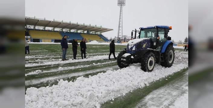 Ağrı'da Spor Hizmetleri Müdürü Cemil Budak, karla kaplı sahayı temizlemek için traktörle sahaya inerek seferberlik başlattı.