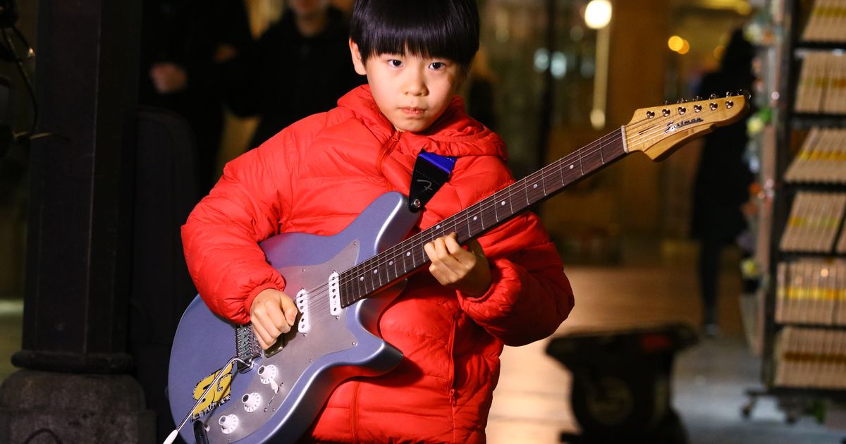 Grmi Knez Mihailova, svi gledaju malog Kineza koji "kida" električnu gitaru.