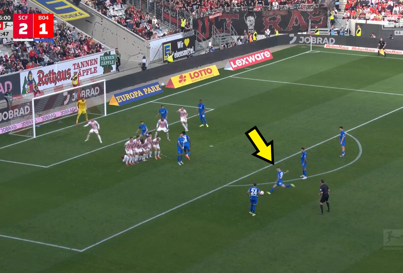 Wiele emocji towarzyszyło spotkaniu Freiburga z Bayerem Leverkusen. Mecz zakończył się wynikiem 3:3. W pierwszej połowie efektownym trafieniem z rzutu wolnego popisał się Alejandro Grimaldo.