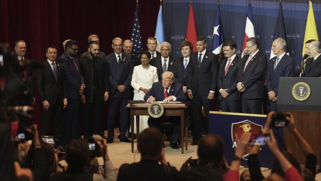 Ο αμερικανός πρόεδρος ανακοίνωσε σε ομιλία του «έναν εντελώς καινούριο συνασπισμό για την εξάλειψη των εγκληματικών καρτέλ που λυμαίνονται την περιοχή μας»