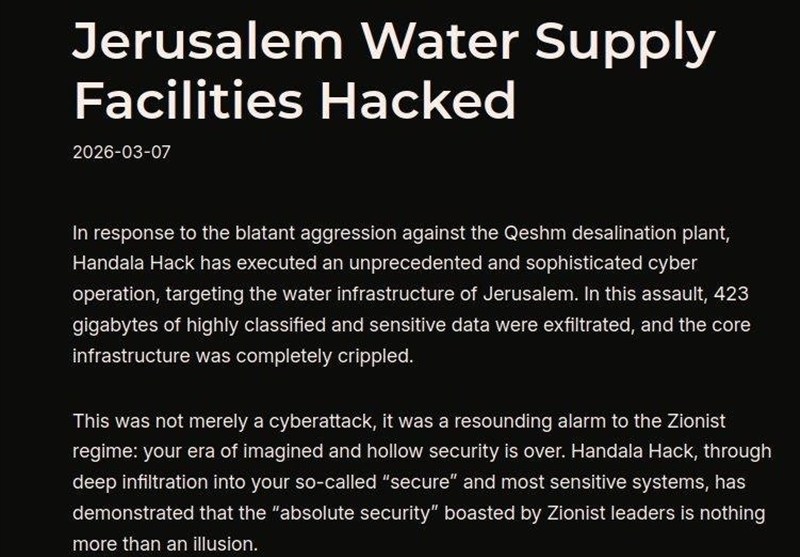 בתגובה למתקפה על מתקן ההתפלה בקשם, קבוצת „חנזלה” ביצעה מבצע סייבר חסר תקדים ומורכב נגד תשתיות המים של העיר ירושלים.