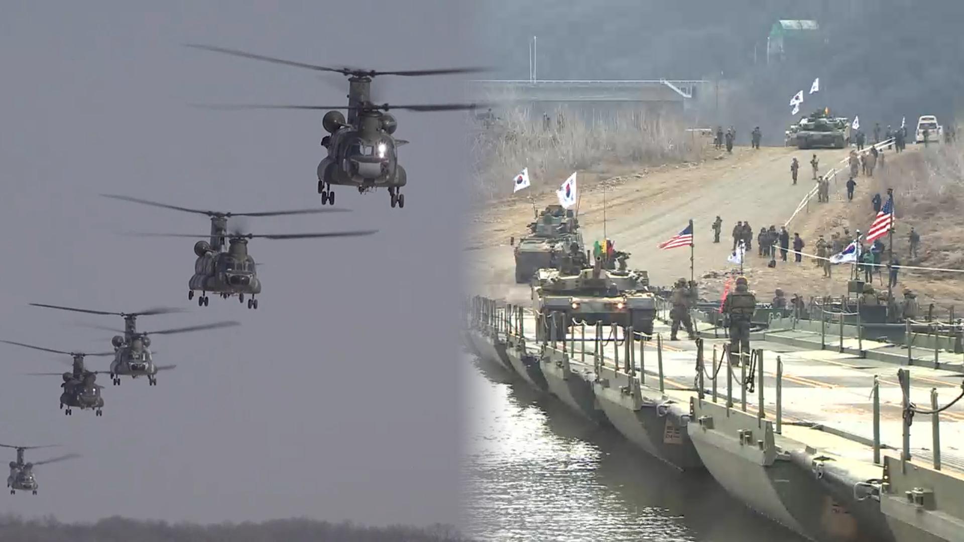 [앵커] 내일(9일)부터 한미 연합훈련 '자유의 방패' 연습이 시작됩니다. 북한과의 관계를 의식해 실기동훈련 횟수는 지난해보다 절반 이상 줄었는데요. '적대적 2국가'를 내세우고 있는 북한이 이 기간 무력도발에 나설지 주목됩니다. 김민아 기자가 보도합니다. [기자] 오는 19일까지 11일간 열리는 상반기 한미 연합연습. 대규모 병력과 장비가 이동하는 야외 기동 훈련은 22건 시행됩니다. 여단급은 6건, 대대급은 10건, 중대급은 6건입니다...