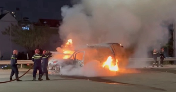 Đang được xe cứu hộ vận chuyển, chiếc ô tô tải bất ngờ phát hỏa rồi bùng cháy dữ dội như "ngọn đuốc" trước khu dân cư Khang Điền.