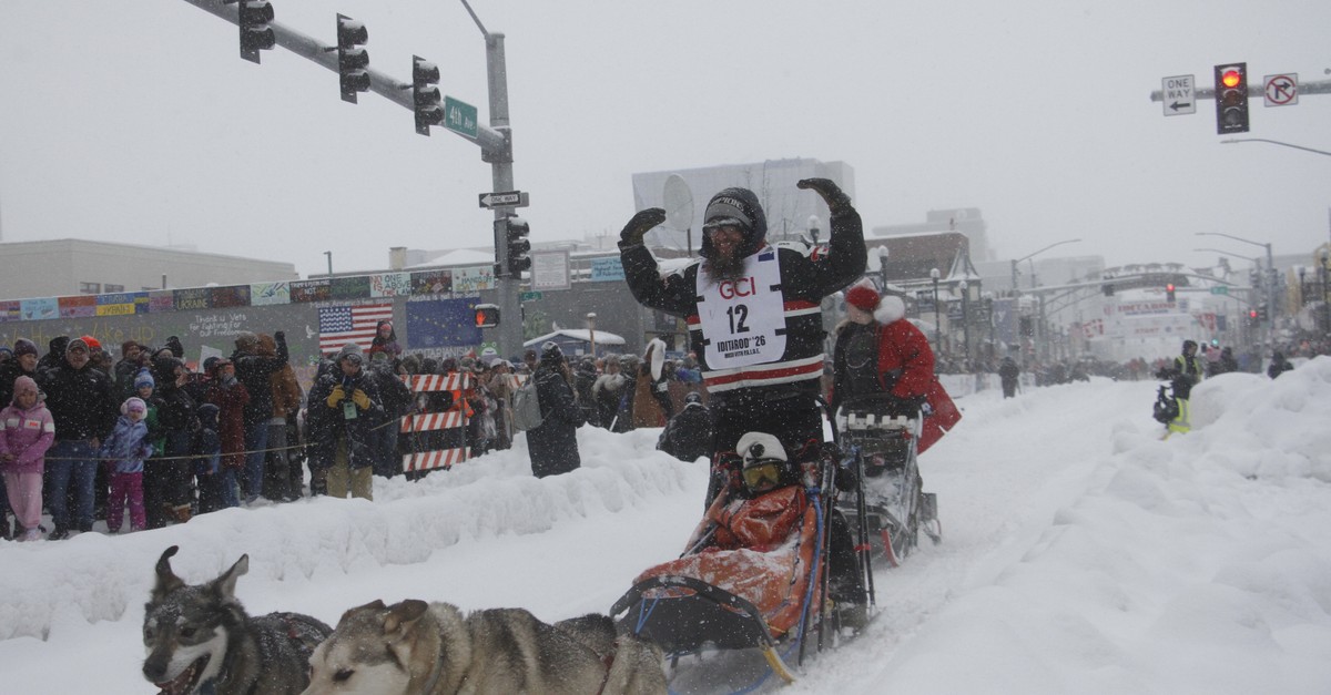 In Alaska sind 37 Männer und Frauen mit ihren Gespannen bei einem Hundeschlittenrennen namens Iditarod gestartet.