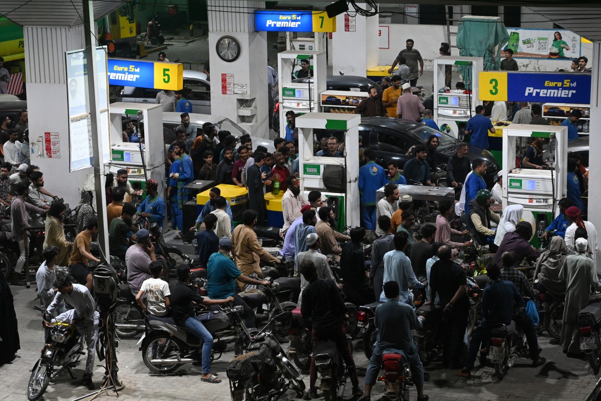 سات مارچ، 2026 کو کراچی میں پیٹرول کی بڑھتی ہوئی قیمتوں کے موقعے پر ایک پیٹرول پمپ پر رش لگا ہوا ہے (اے ایف پی)