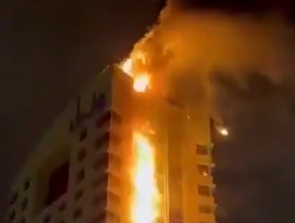 ببینید/ آتش‌سوزی هتل محل سکونت سربازان آمریکایی در کویت