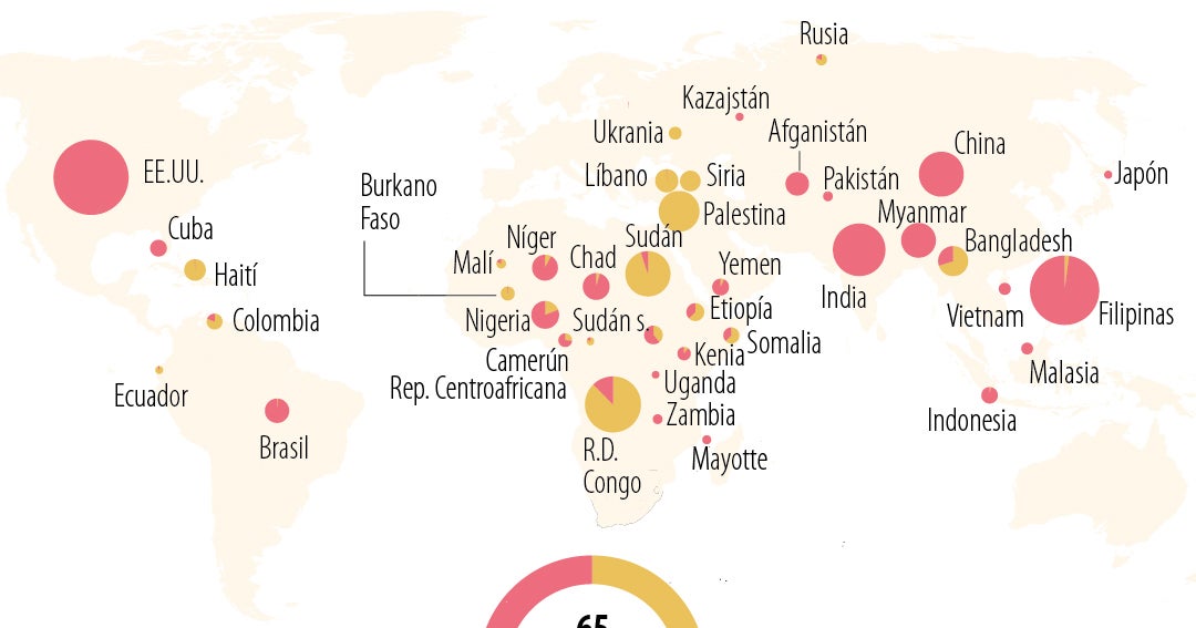 De los 65,3 millones de desplazamientos internos que se registraron en 2024, 70% fueron ocasionados por los desastres naturales