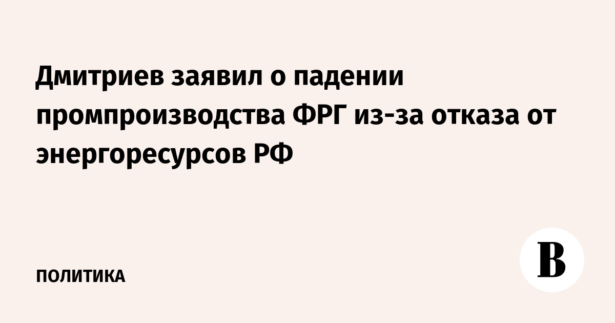 Дмитриев заявил о падении промпроизводства ФРГ из-за отказа от энергоресурсов РФ