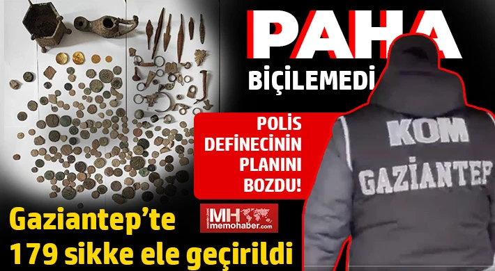 Gaziantep'te Kaçakçılık ve Organize Suçlarla Mücadele (KOM) Şubesi ekiplerince düzenlenen operasyonda tarihi eser niteliğinde 179 sikke ve 29 obje ele geçirildi, 1 şüpheli gözaltına alındı.