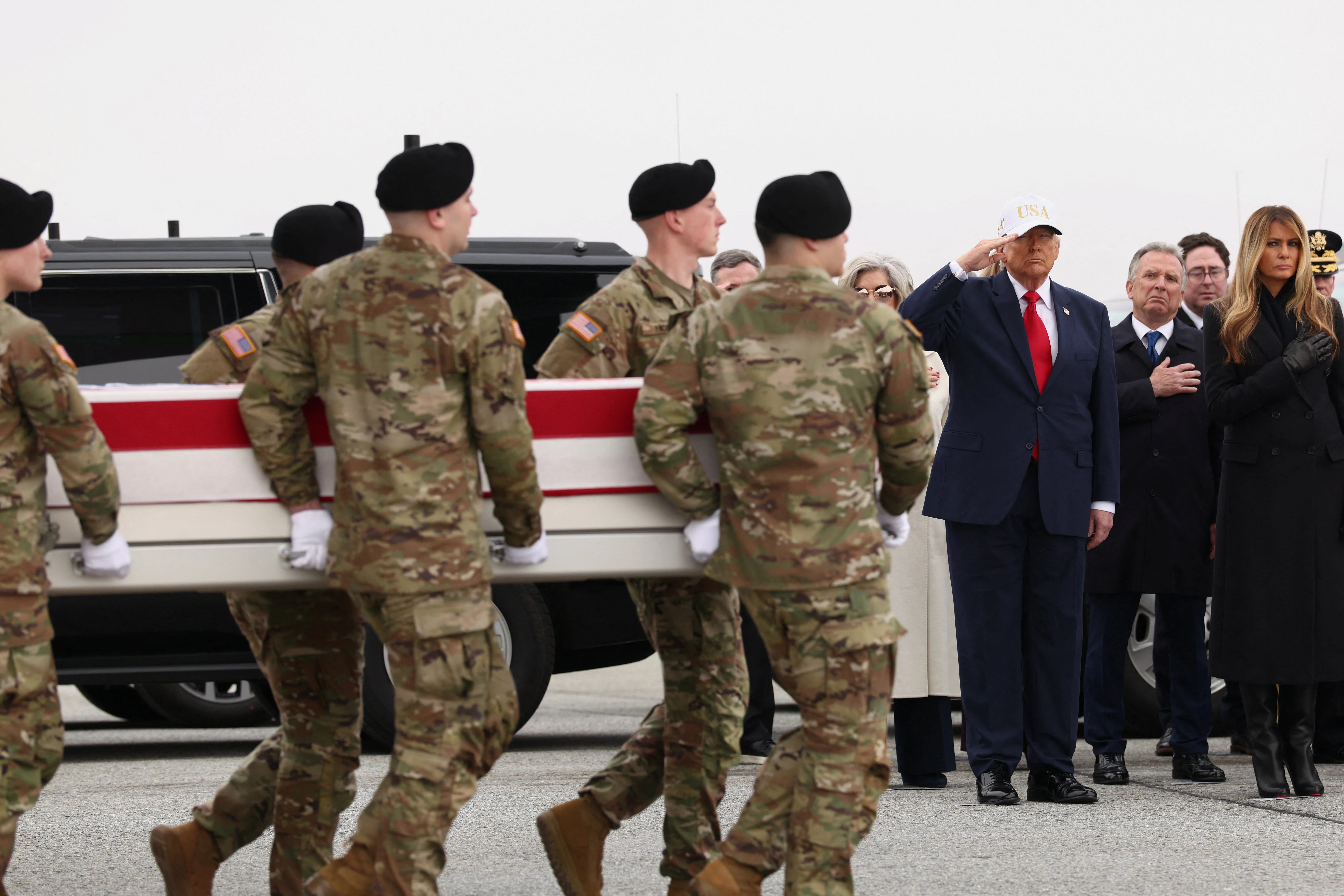 Američki predsjednik Donald Trump sudjelovao je u subotu u zračnoj bazi Dover u Delawareu na kratkoj ceremoniji povratka posmrtnih ostatka šestorice američkih vojnika poginulih u ratu s Iranom.