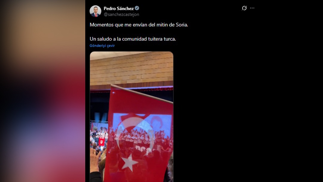 Sosyal medya platformu X'te son haftalarda artan Türk-İspanyol etkileşimine İspanya Başbakanı Pedro Sanchez de katıldı. İspanya başbakanı X üzerinden Türk payraklı bir paylaşım yaptı.