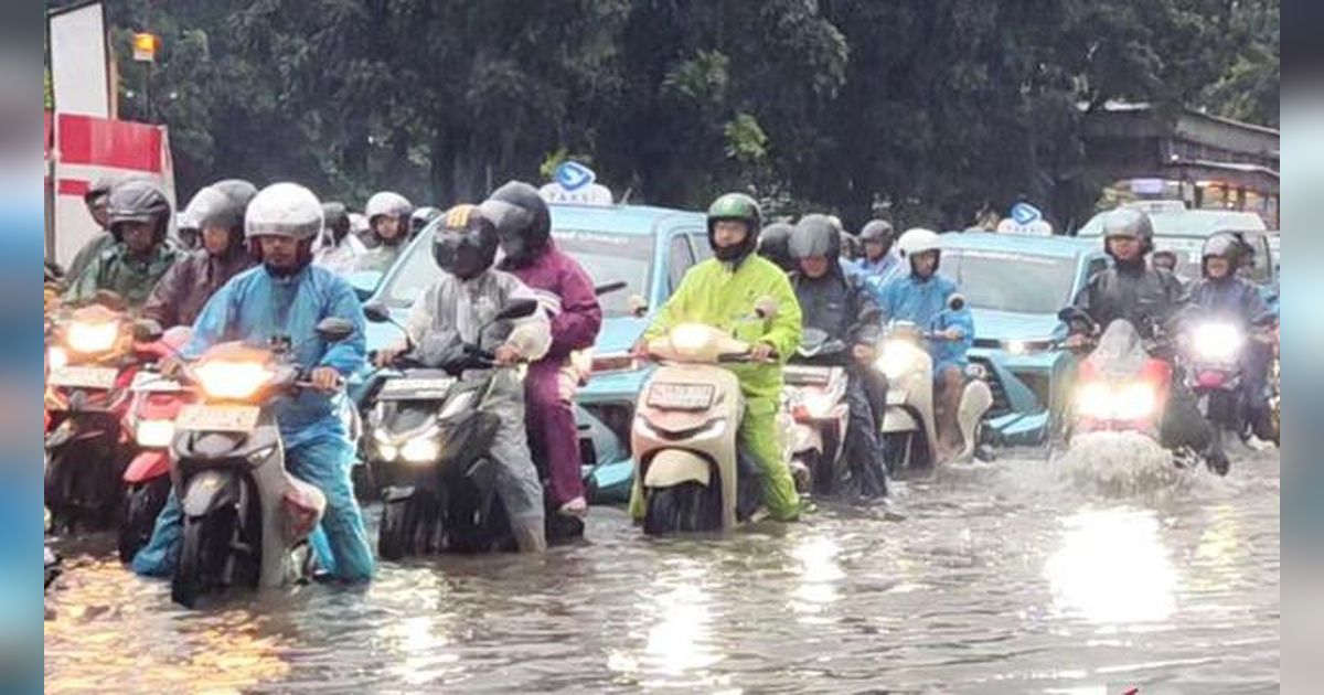 Banjir melanda beberapa ruas jalan di Jakarta setelah hujan deras yang terjadi sejak malam Sabtu, 7 Maret 2026.