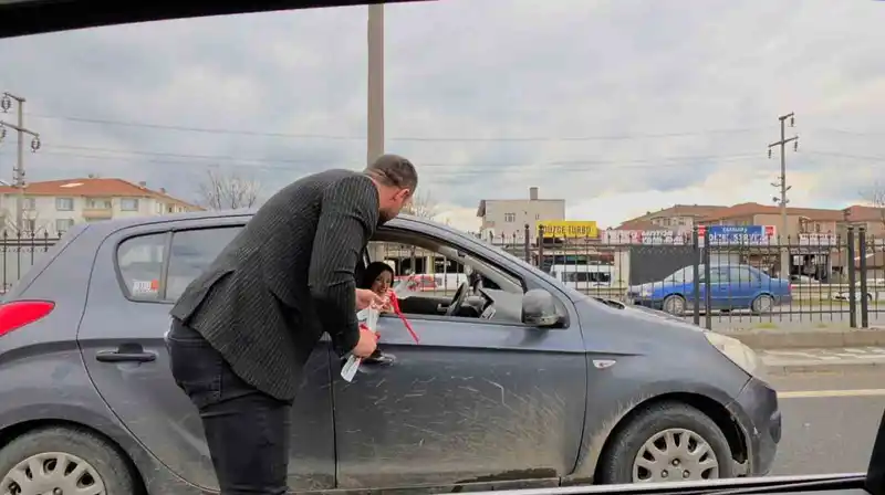 Düzce'de torunu ve ninesi kadına şiddete karşı korna çaldırdı