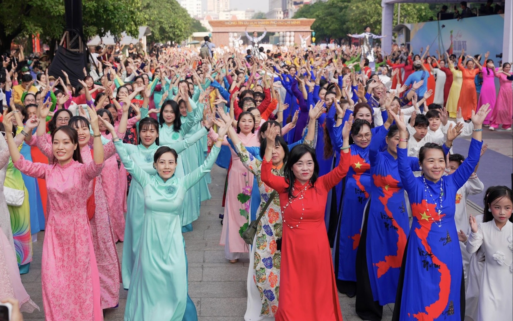 (Chinhphu.vn) - Hoạt động đồng diễn áo dài năm nay không chỉ là điểm nhấn trong chuỗi sự kiện kỷ niệm Ngày Quốc tế Phụ nữ mà còn góp phần lan tỏa giá trị văn hóa truyền thống, khuyến khích người dân mặc áo dài trong đời sống hằng ngày, đồng thời quảng bá hình ảnh áo dài Việt Nam đến với bạn bè trong và ngoài nước.