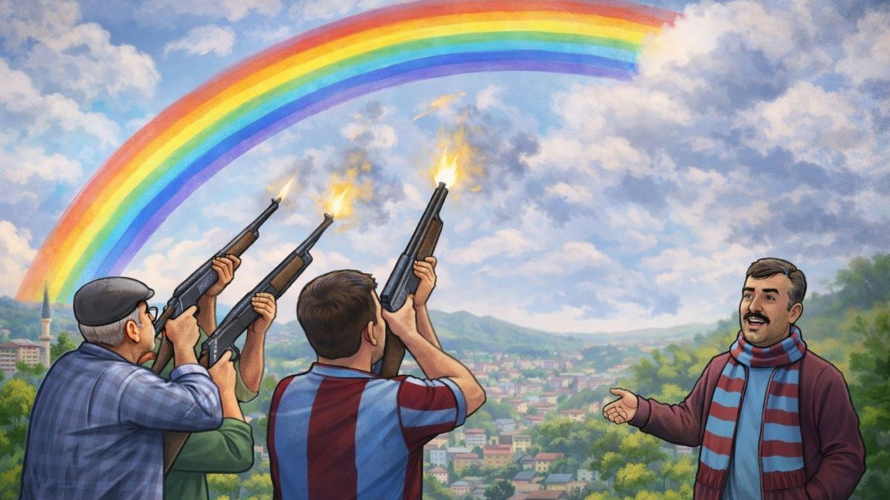 Trabzon’da yağmur sonrası gökyüzünde beliren gökkuşağı şehirde kısa süreli bir “renk alarmına” neden oldu. İddialara göre gökkuşağında sarı ve lacivert renklerin yan yana belirdiğini fark eden bazı vatandaşlar, durumu “olağanüstü meteorolojik provokasyon” olarak değerlendirdi.