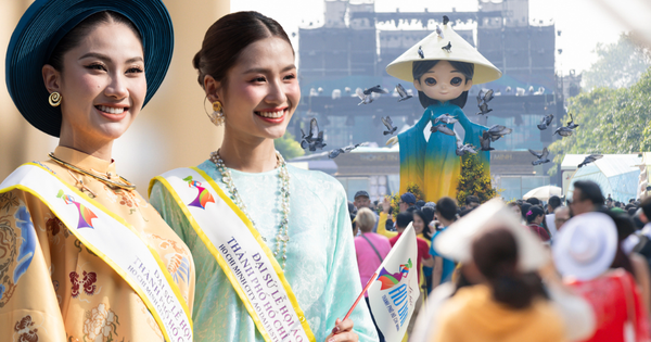 Hàng nghìn phụ nữ trong tà áo dài truyền thống đã cùng đồng diễn dân vũ và diễu hành tại phố đi bộ Nguyễn Huệ (TP.HCM) sáng 8/3, tạo nên không khí sôi động nhân Ngày Quốc tế Phụ nữ.