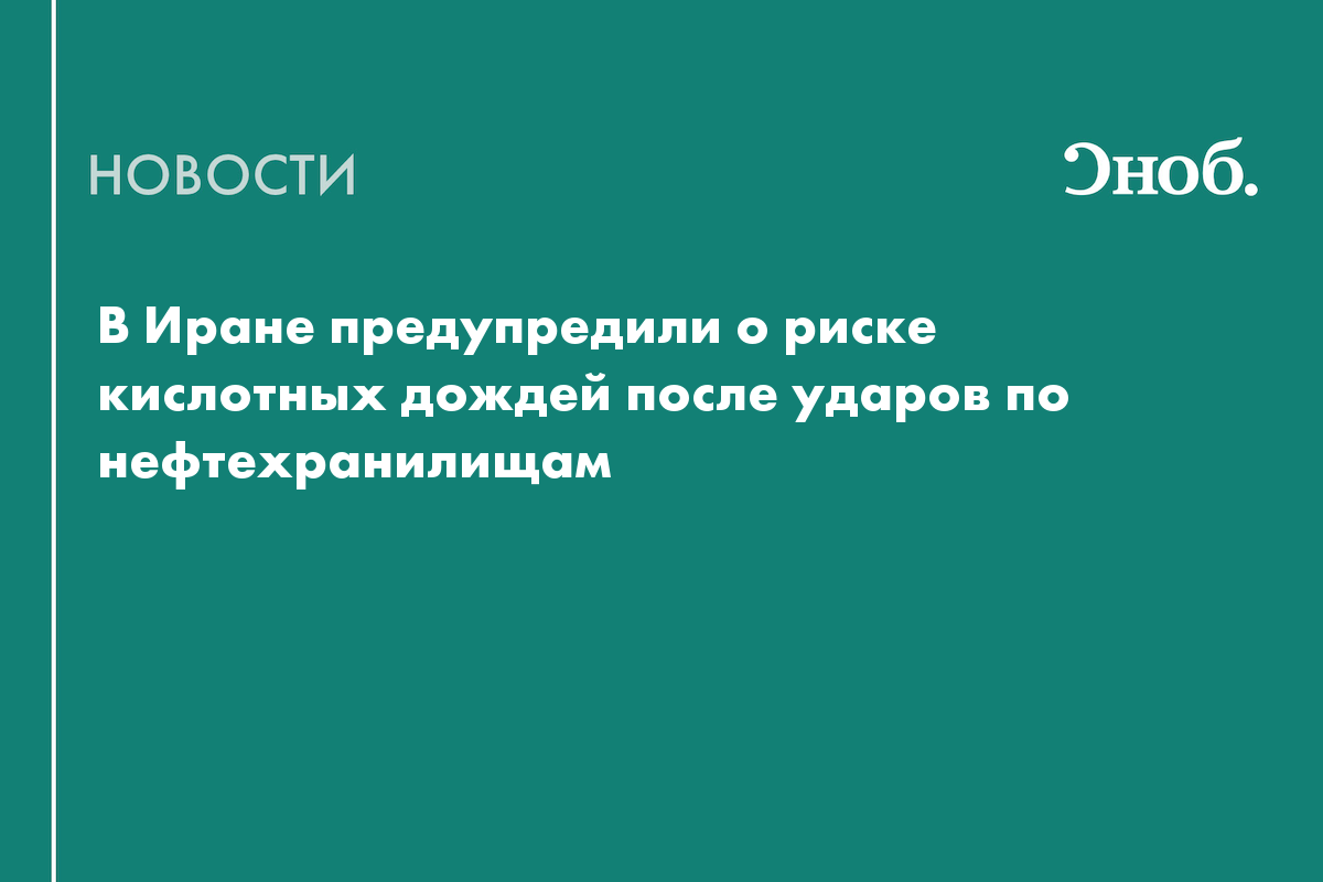 Иранский Красный Полумесяц предупредил жителей о риске кислотных дождей после ударов по нефтехранилищам. В сообщении организации говорится, что взрывы на таких объектах сопровождаются выбросом в атмосферу токсичных соединений углеводородов, а также оксидов серы и азота.
