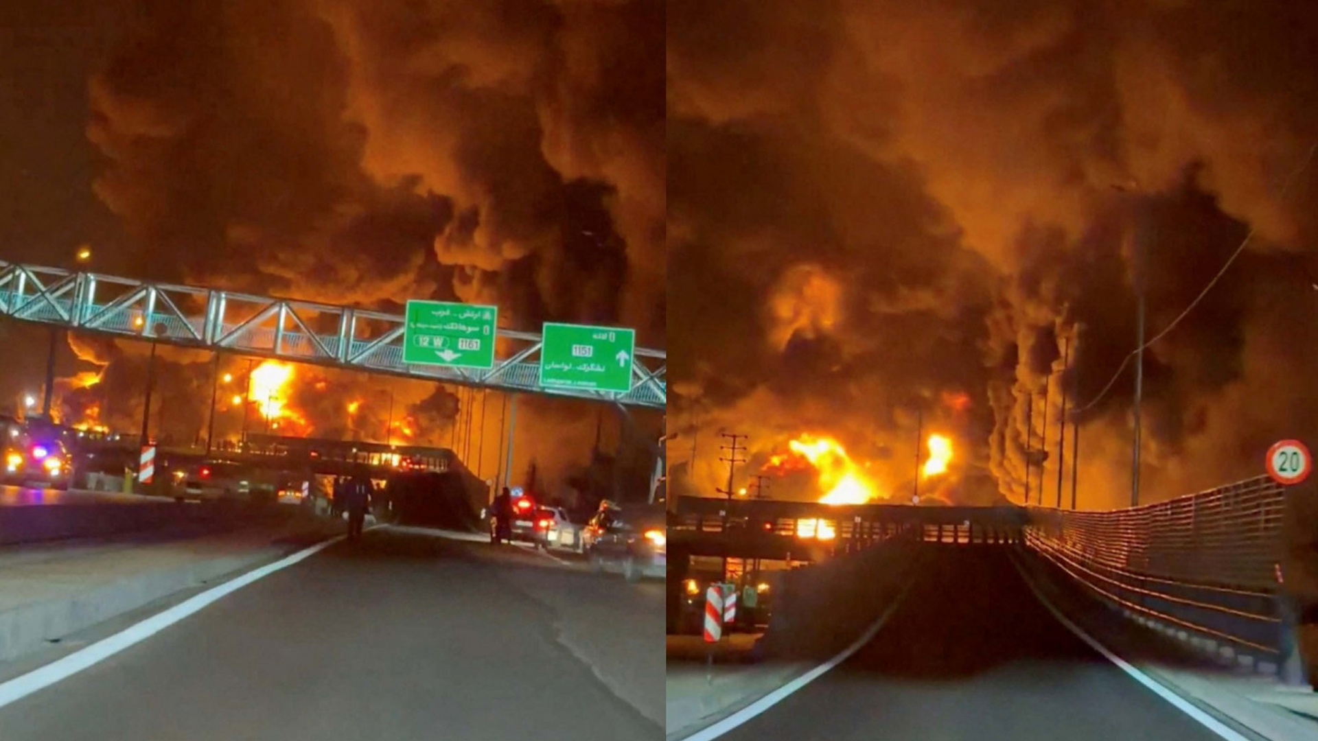 ইরানের রাজধানী তেহরানের কাছে একটি তেলের ডিপোতে ইসরাইলি-মার্কিন হামলার পর বিশাল এলাকাজুড়ে তেল ছড়িয়ে পড়েছে। পয়ঃনিষ্কাশন ব্যবস্থায়ও ঢুকে পড়েছে তেল। যার ফলে রাস্তার পাশে সৃষ্টি হয়েছে ‘আগুনের নদী’।‘লিভিং ইন তেহরান’ নামের একটি অ্যাকাউন্টি থেকে এক্স-এ একটি ভিডিও প্রকাশ করা হয়েছে। তাতে দেখা যাচ্ছে, শহরের একটি দীর্ঘ রাস্তার পাশে আগুন জ্বলছে। গত শনিবার (৭ মার্চ) দিবাগত রাতে প্রথমবারের মতো ইরানের তেলের ডিপোগুলোতে হামলা চালিয়েছে ইসরাইল ও যুক্তরাষ্ট্র। অন্তত ৩০টি তেলের ডিপো ধ্বংস হয়েছে। এতে অন্তত চারজন নিহত হয়েছে। হামলা হয়েছে একটি পানি বিশুদ্ধকরণ (ডিস্যালিনেশন) প্ল্যান্টেও। আরও পড়ুন: পানি শোধনাগারে হামলার অভিযোগ ইরানের, ট্রাম্প বললেন, ‘কিছুই জানেন না’ ইরানের জ্বালানি মন্ত্রণালয়ের বরাতে ফার্স নিউজ জানিয়েছে, হামলার শিকার হওয়া ডিপোগুলোর মধ্যে দুটি শারান ও শাহর রে। এগুলো তেহরানের ভিন্ন ভিন্ন এলাকায় অবস্থিত। ভিডিওতে বিশাল কালো ধোঁয়ার কুণ্ডলী উঠতে দেখা যায়। তেহরানের কাছাকাছি কারাজ শহরের একটি তেল শোধনাগারেও হামলা হয়েছে। হামলার পর তেলের ডিপোগুলো এখনও জ্বলছে। ফলে পুরো রাজধানী শহর কালো ধোঁয়ায় ঢেকে গেছে। দিনের বেলাতেও যেন রাতের অন্ধকার নেমে এসেছে। এদিকে তেলের ডিপোতে হামলার জবাবে কঠোর পরিণতির হুঁশিয়ারি দিয়েছে ইরান।