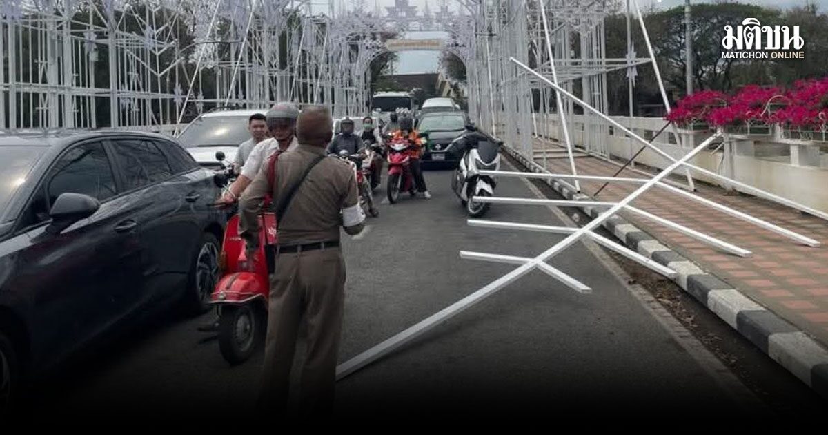 เชียงใหม่พายุถล่ม โครงเหล็กสะพานนวรัฐหลุด จนท.เร่งซ่อม แนะเลี่ยงเส้นทาง