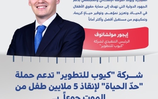 أعلنت شركة "كيوب للتطوير" عن مساهمتها بمبلغ مليوني درهم دعماً لحملة "حد الحياة" لإنقاذ 5 ملايين طفل من الموت جوعاً، More...