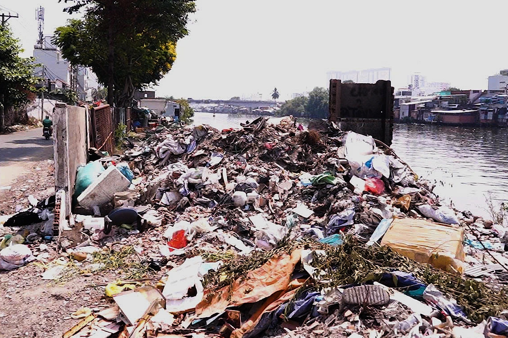 (Dân trí) - Sau khi nhà ven kênh Đôi ở TPHCM được tháo dỡ phục vụ chỉnh trang đô thị, khu đất trống dọc bờ Bắc xuất hiện nhiều điểm đổ rác tự phát, rác tràn xuống lòng đường, gây ô nhiễm khu vực.