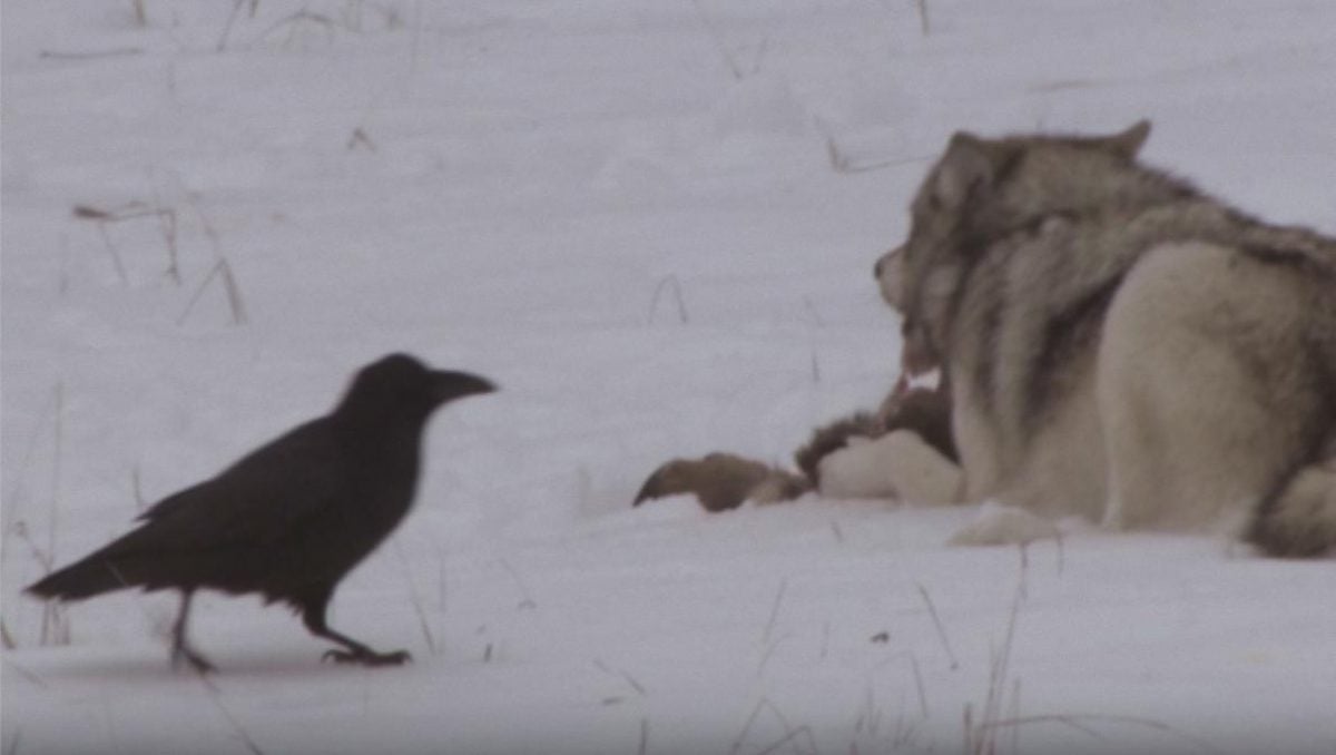 У Єллоустоуні круки навчилися стежити за полюванням вовками, щоб мати більше їжі