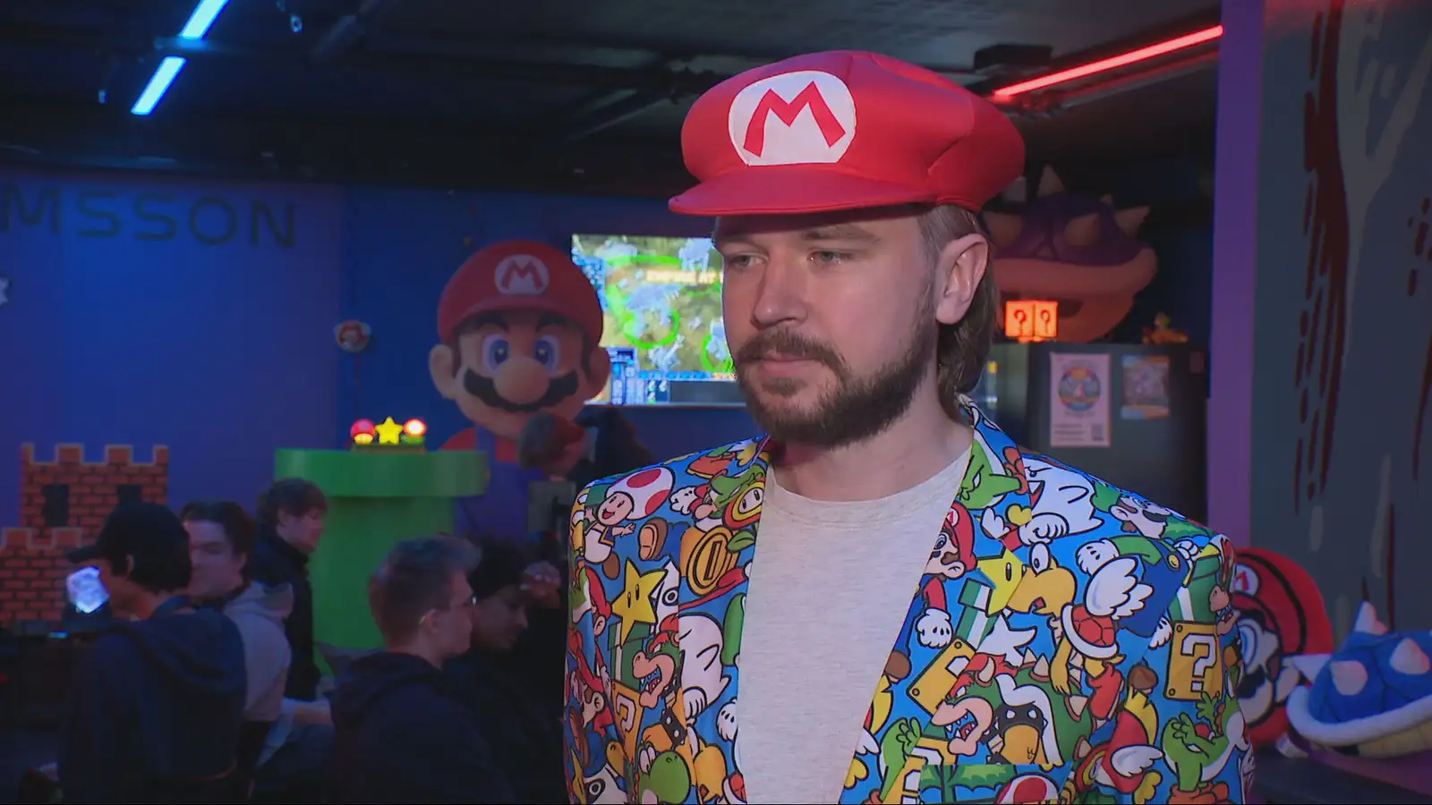 Aðdáendur Super Mario Bros-tölvuleikjaheimsins komu saman í rafíþróttamiðstöðinni Next Level Gaming í Egilshöll í Grafarvogi í dag, á lokadegi tölvuleikjahátíðarinnar Mario-Con. Fyrsta útgáfa leiksins Super Mario Bros kom á markað fyrir rúmum 40 árum og hefur hann notið sívaxandi vinsælda um allan heim. Hátíðin hófst á þriðjudag og voru gestir á öllum aldri. Þar var meðal annars boðið upp á jazz-tónleika, bingó auk þess sem keppt var í fjölda tölvuleikja. Ákveðin nostalgía sem fylgi því að spila Super Mario Bros-tölvuleiki „Hugmyndin að Mario-Con tölvuleikjahátíðinni kom í kjölfar þess að ég hafði stjórnað fjölda Mario-Cart tölvuleikjakeppna. Mig langaði í öðruvísi viðburð, ekki bara tölvuleikjakeppni, því það er takmarkandi á þann fjölda fólks sem getur komið á viðburðinn,“ segir Adam Scanlon, annar tveggja eigenda Next Level Gaming og skipuleggjandi hátíðarinnar. En hvað skyldi það vera við Super Mario Bros- leikina sem vekur áhuga? „Mario hefur verið til í áratugi. Fólk ólst upp við að spila leikina, leikina með Mario, sem eru meðal bestu tölvuleikja sem hafa verið gerðir. Fyrir eldri tölvuleikjaspilara er mikil nostalgía sem felst í að spila þá, og fyrir yngri er það sama uppi á teningnum. Það er verið að gefa út nýja Mario-leiki, leikjatölvur hjá Nintendo. Þannig fólk elskar bara Mario. Hann er maðurinn.“ Aðdáendur Super Mario skemmtu sér og öttu kappi á lokadegi tölvuleikjahátíðarinnar Mario Con sem fór fram í Egilshöll. Fram fór keppni í leiknum Super Smash Bros og sögðu keppendur leikinn gefa sér algjört frelsi. „Ég elska þennan leik“ Þrjátíu tölvuleikjaspilarar öttu kappi á lokadegi hátíðarinnar í dag í leiknum vinsæla Super Smash Bros. Bergsteinn Ásgeirsson segir hreyfinguna það besta við leikinn. „Það er svona skæri, blað og steinn leikurinn á bak við allt. Að geta hreyft sig í kringum andstæðinginn, reyna að giska hvað hann er að fara að gera og nota þá þekkingu. Ég elska þennan leik, flest við hann.“ Þau Aþena Ýr Ingimundardóttir og Jason Helgi Hallgrímsson höfðu komist í gegnum fyrsta útslátt keppninnar þegar fréttastofa náði af þeim tali. Þau segjast þrautreynd í slíkum tölvuleikjakeppnum. „Ég er búin að vera að keppa í fimm ár og hann er bara búinn að vera að keppa í eitt og er strax orðinn númer tvö á landinu. Ég er ótrúlega stolt af honum,“ segir Aþena Ýr, sem hefur unnið keppnina fjögur ár í röð. Hvað er það við þennan leik sem er svona skemmtilegt? „Þessi leikur er list. Það er bara algjört frelsi. Það er ekkert sem þú planar fyrirfram, þú ákveður allt á stundinni, án þess að ákveða það. Þú bara gerir það. Það er hreyfingin. Þetta er algjört óhapp. Þetta átti að vera barnaleikur, hann er eldri en ég, en það er eitthvað við hann. Hann er bara fullkominn,“ segir Aþena. „Það eru svona folk-heroes sem eru með alvöru sögu. Og maður byrjaði að fylgjast með því og þá hugsar maður: Hvað er svona gott við þennan tölvuleik? Þetta er eini sem hefur náð að lifa mjög lengi og er með svo mikið hópafl,“ segir Jason.